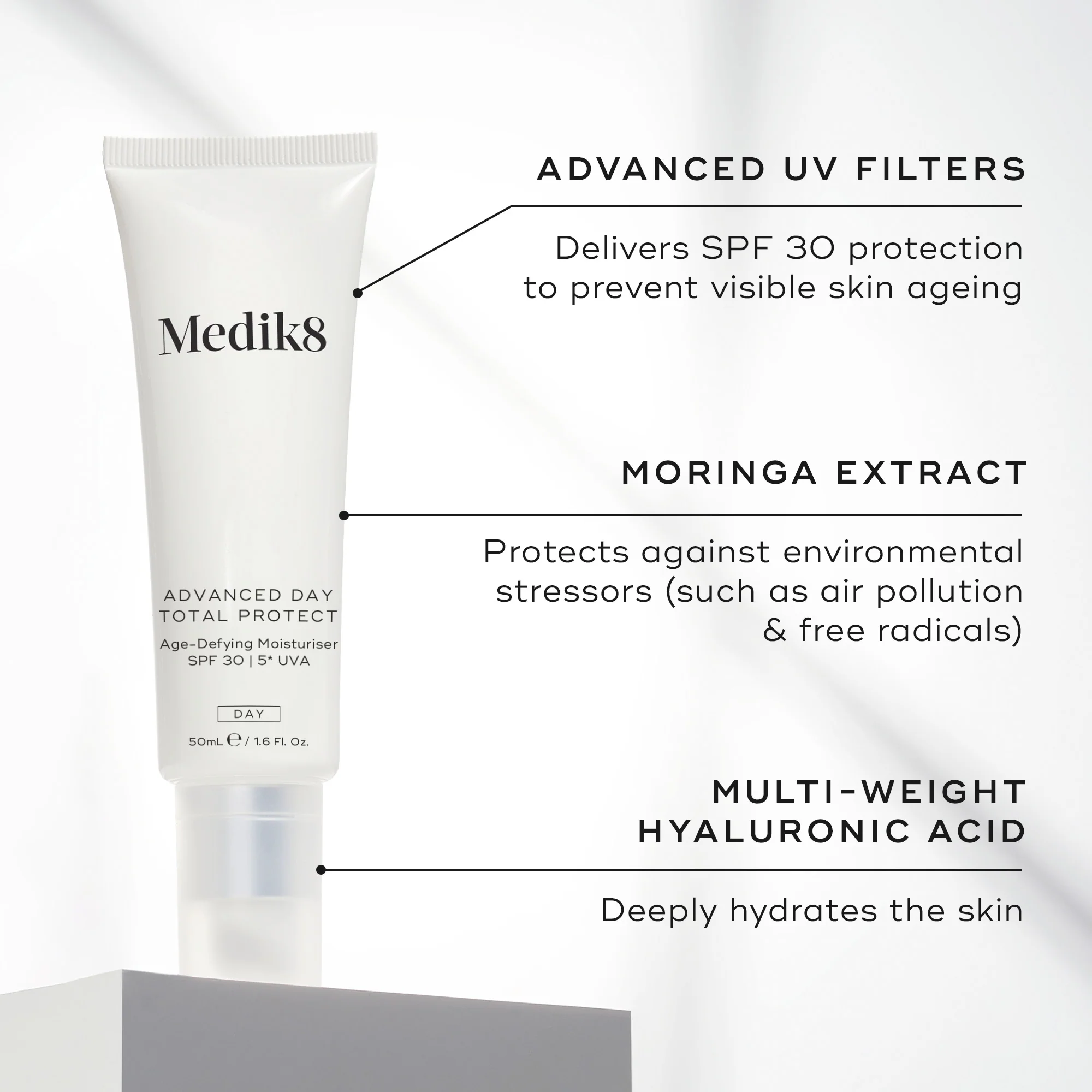 Hydrate, smooth and shield your skin from the damaging, ageing and burning effects of UV rays with Advanced Day Total Protect.